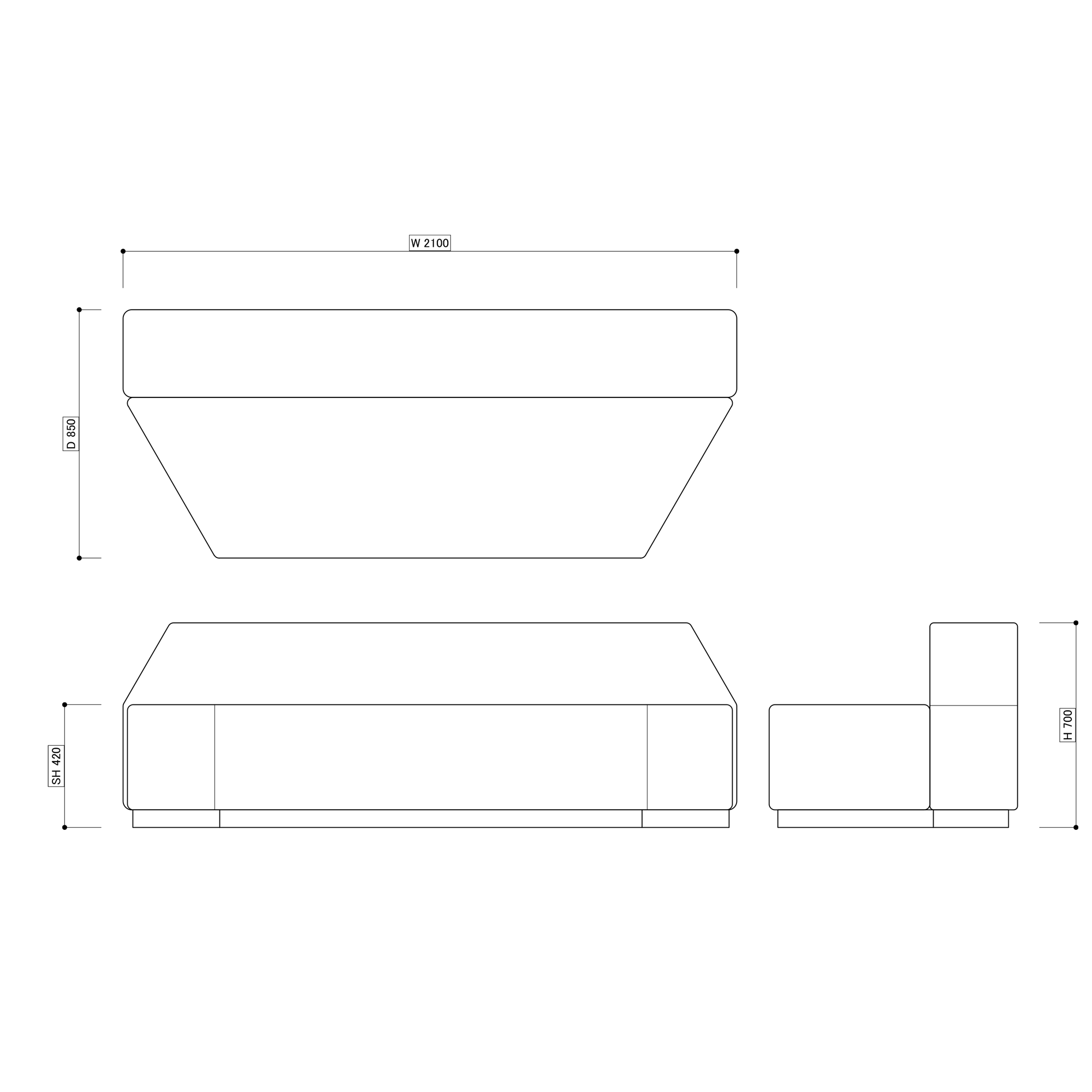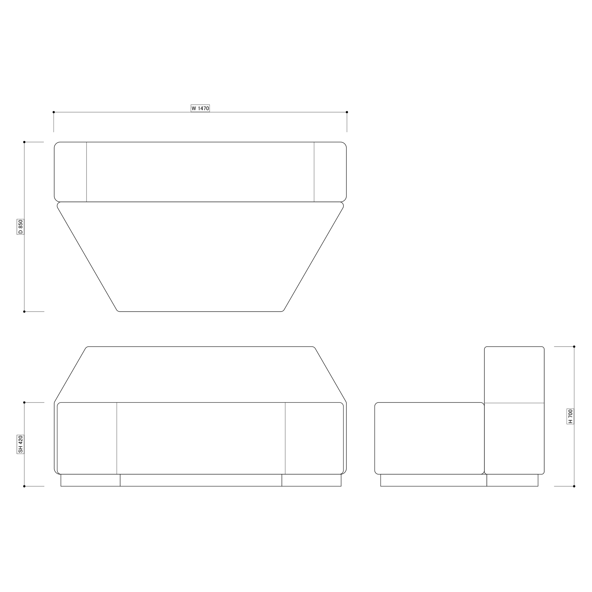 - 多角形のソファとベンチでレイアウトすることで空間に動きを与えることができます。 ツートーンにするとより遊び心のあるデザインになりま...
