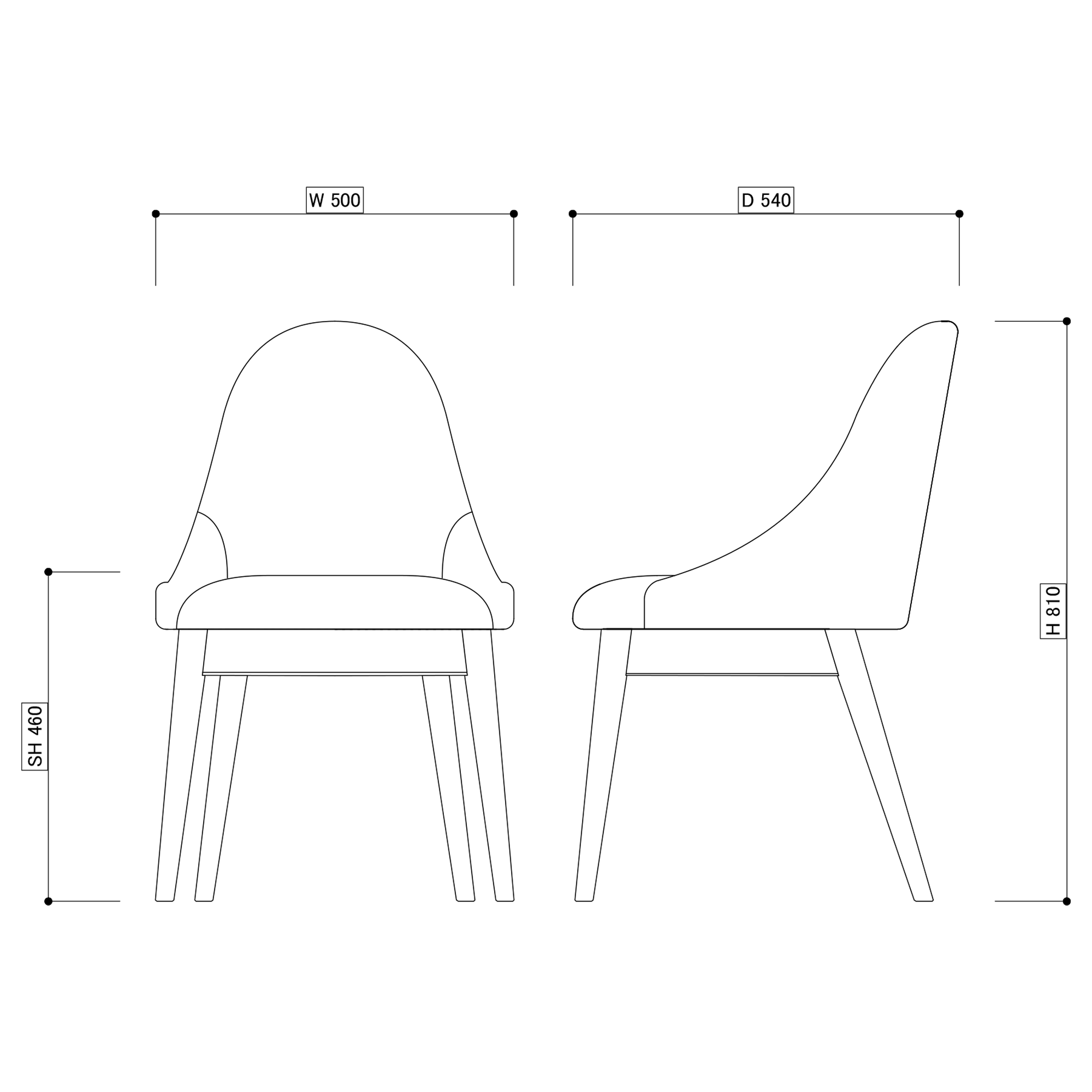 - クーノ アームレスチェア 木製脚 取手無し