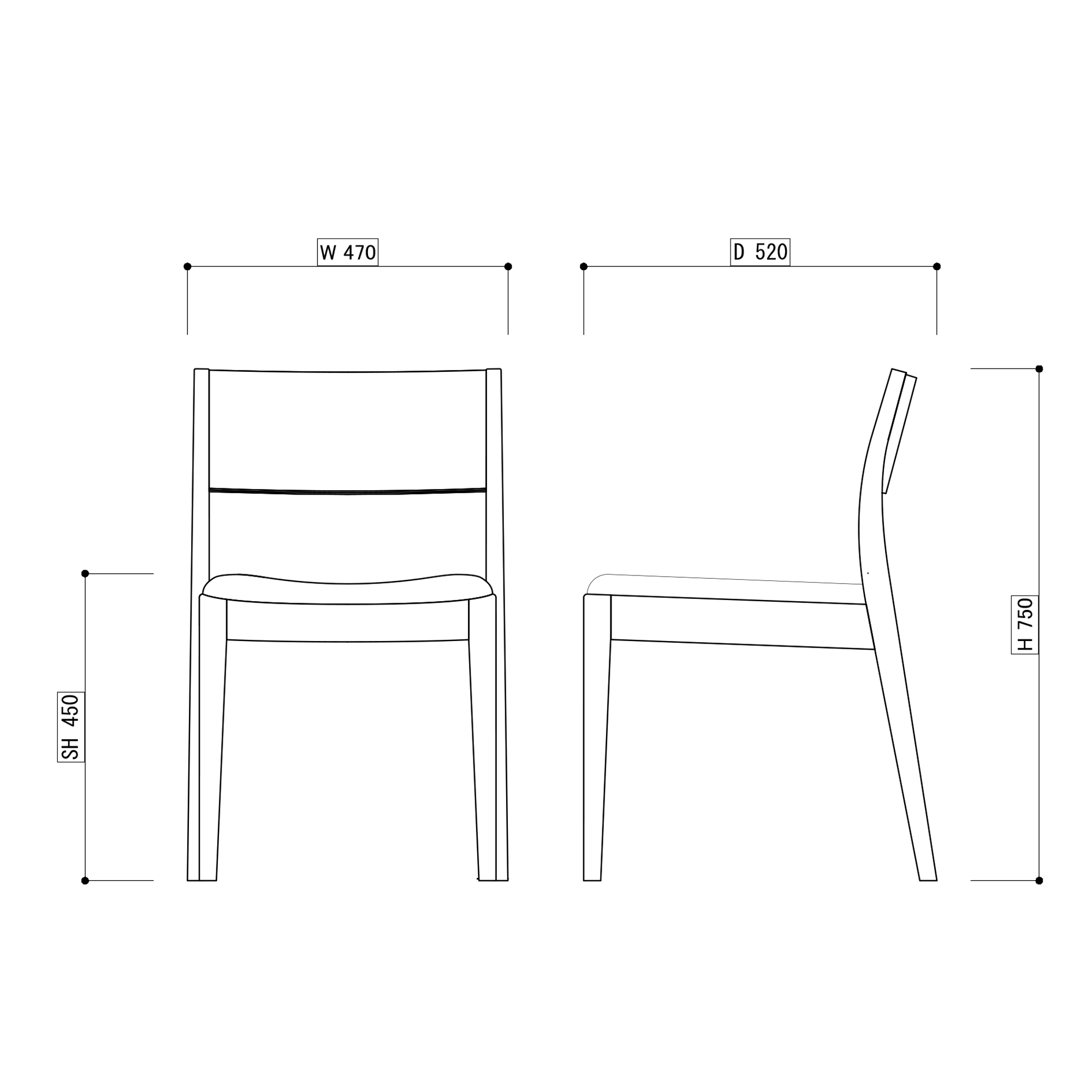 一般的に椅子は後ろ姿を見られる時間の方が多いため、背もたれの納まりには見た目にも気を使いました。弓なりに反った後脚と背持たれが作り出す影が美しく見えるようにこだわりました。