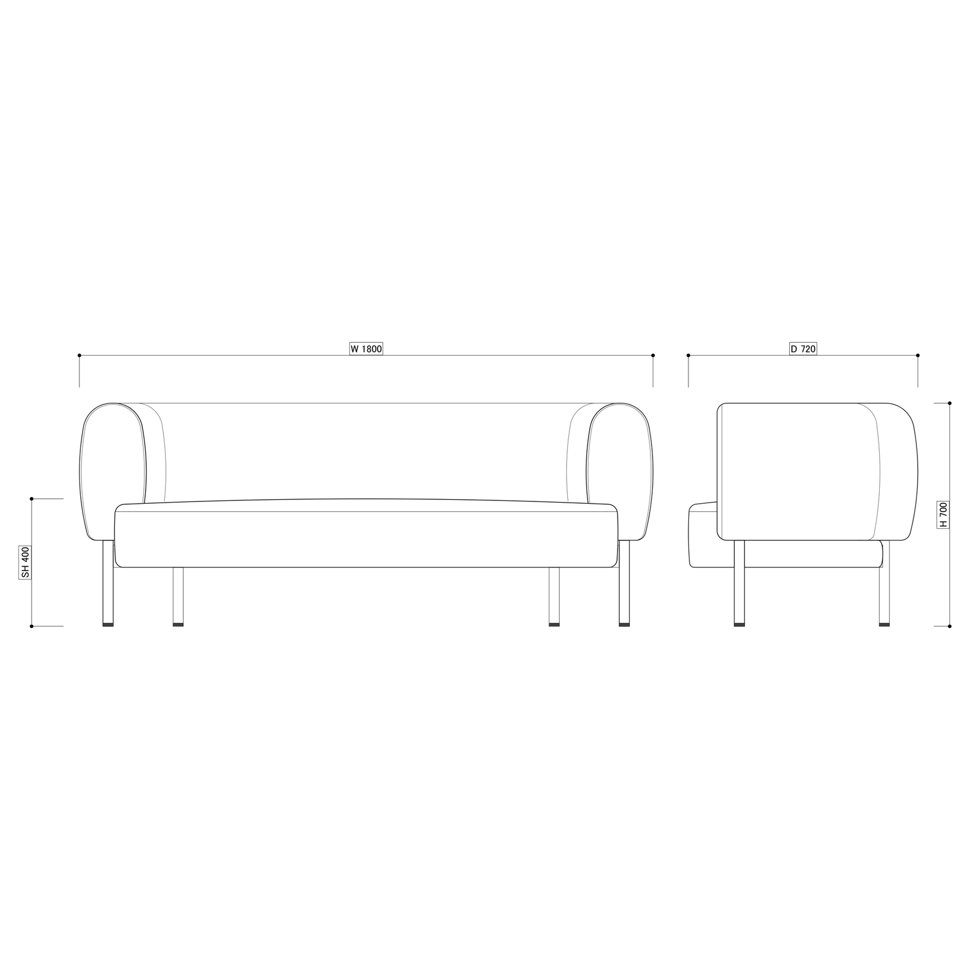 - W1800 × D720 × H700 (SH400)