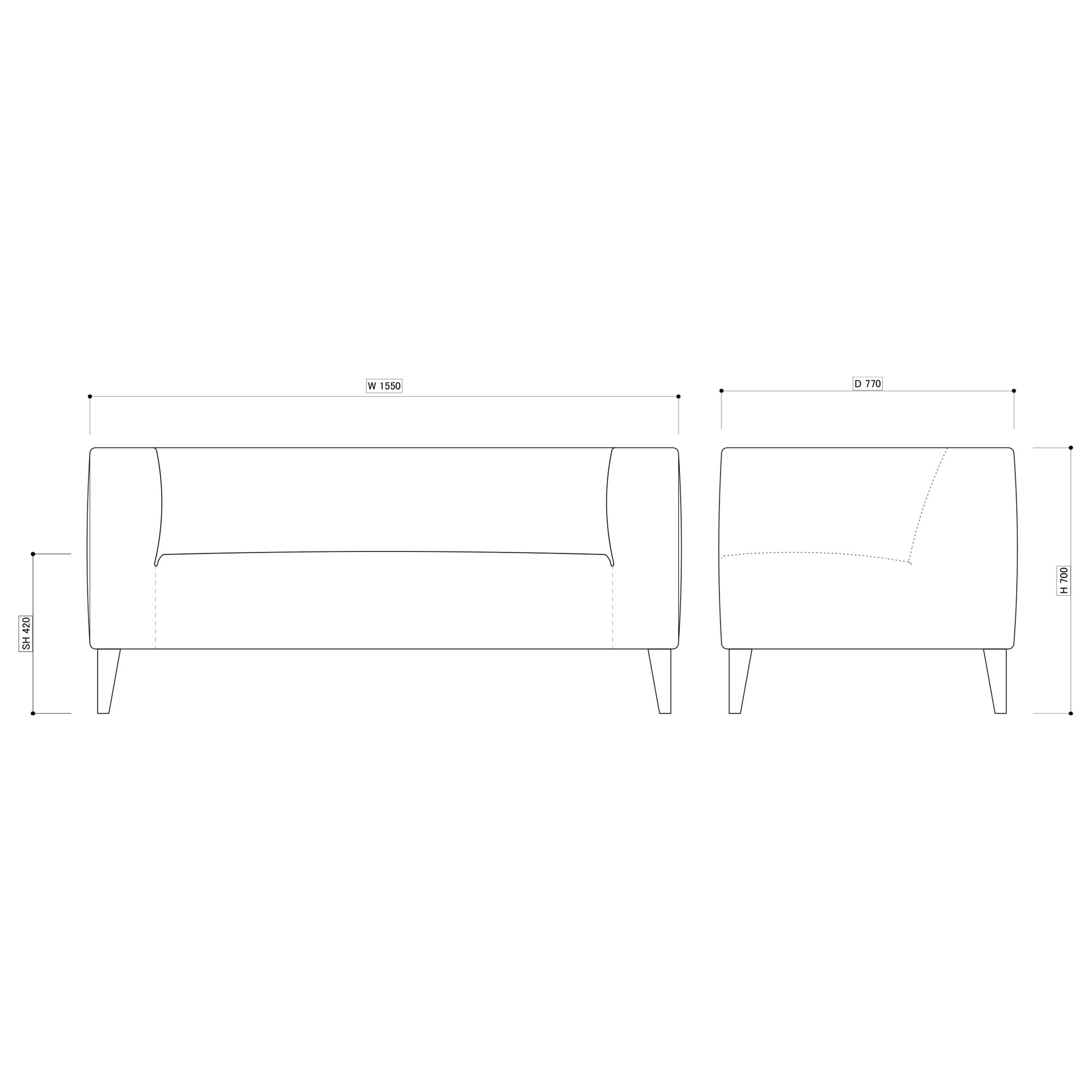 - W1550×D770×H700 (SH420)