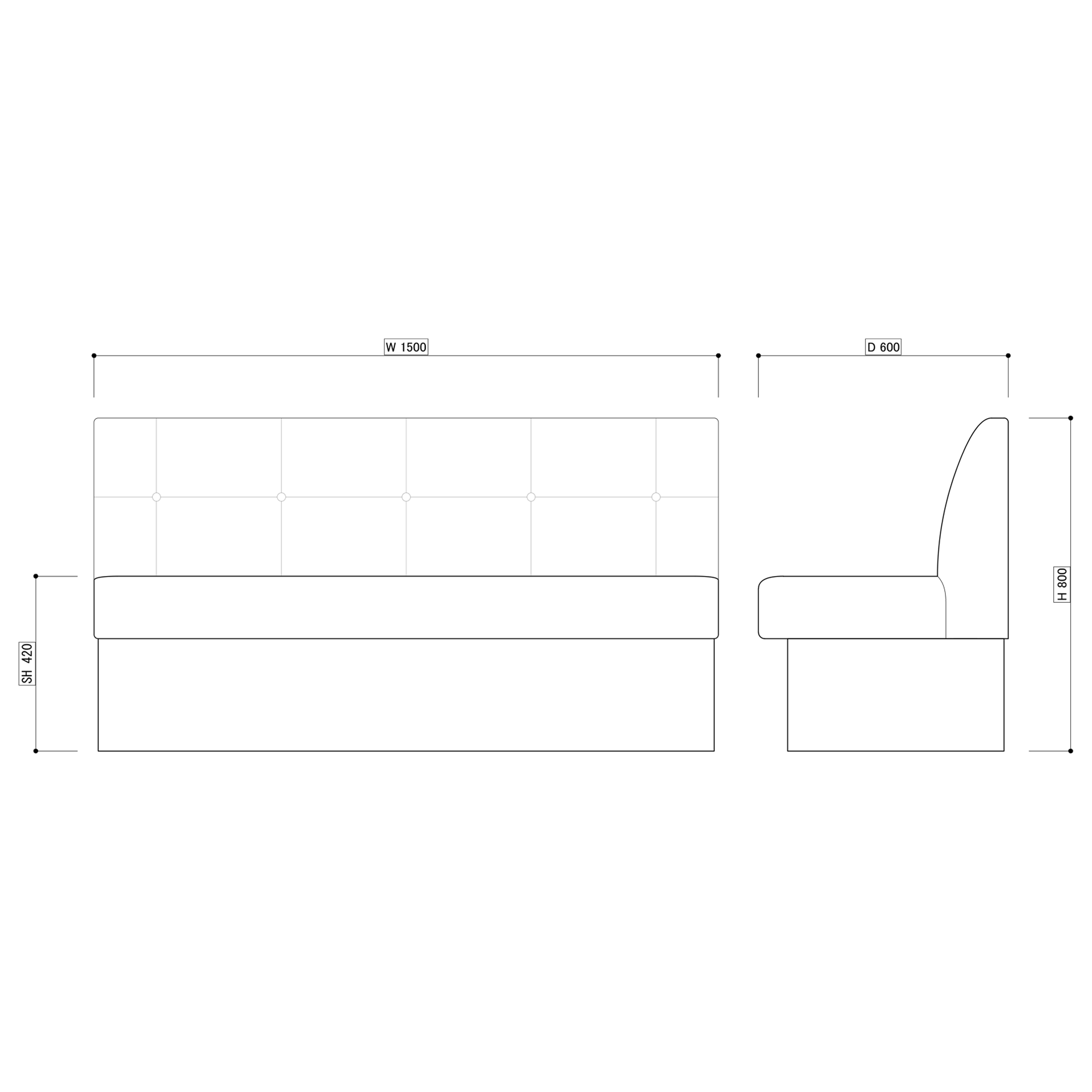 - サイズ W1500 × D600 × H80...