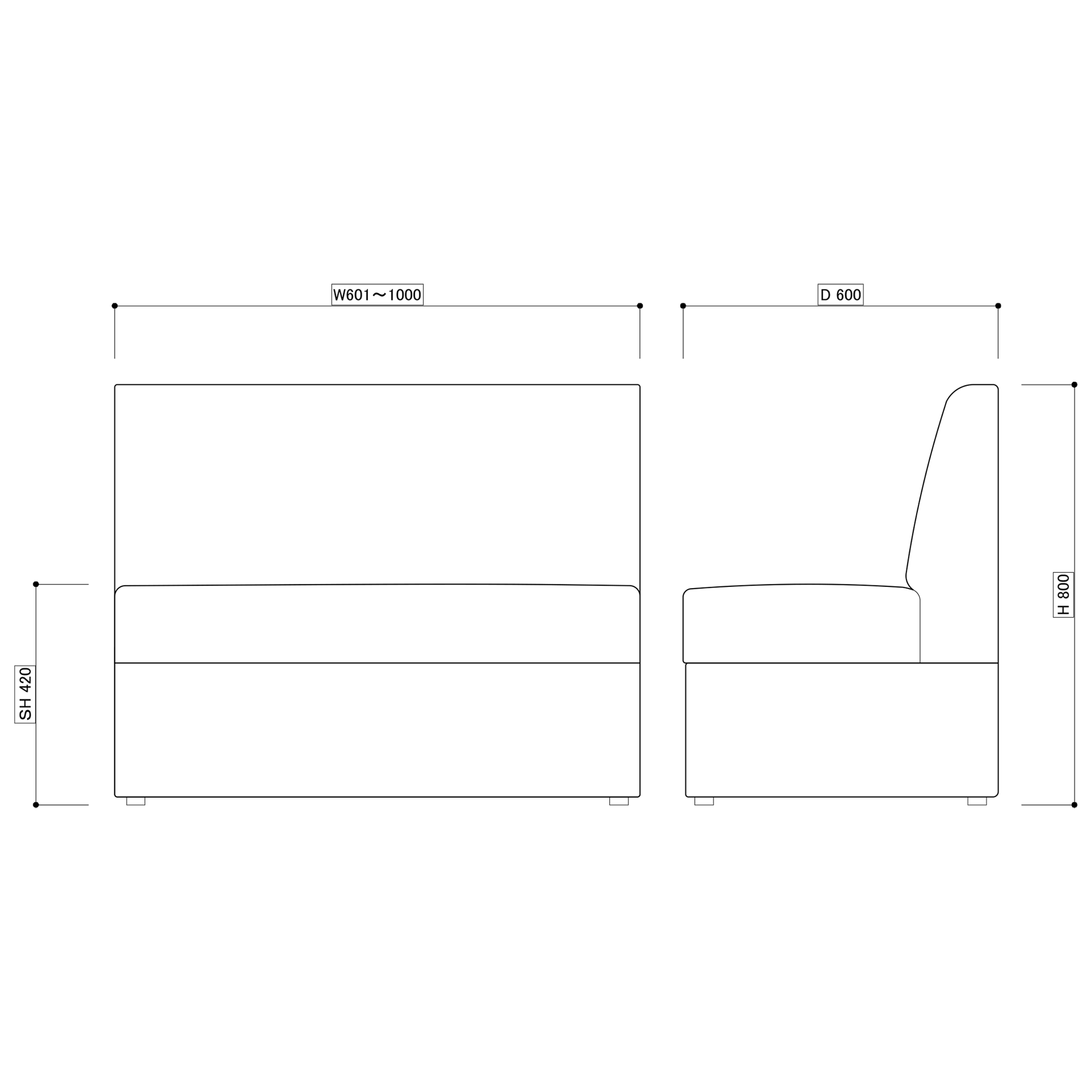 - サイズ W601~1000×D600×H80...