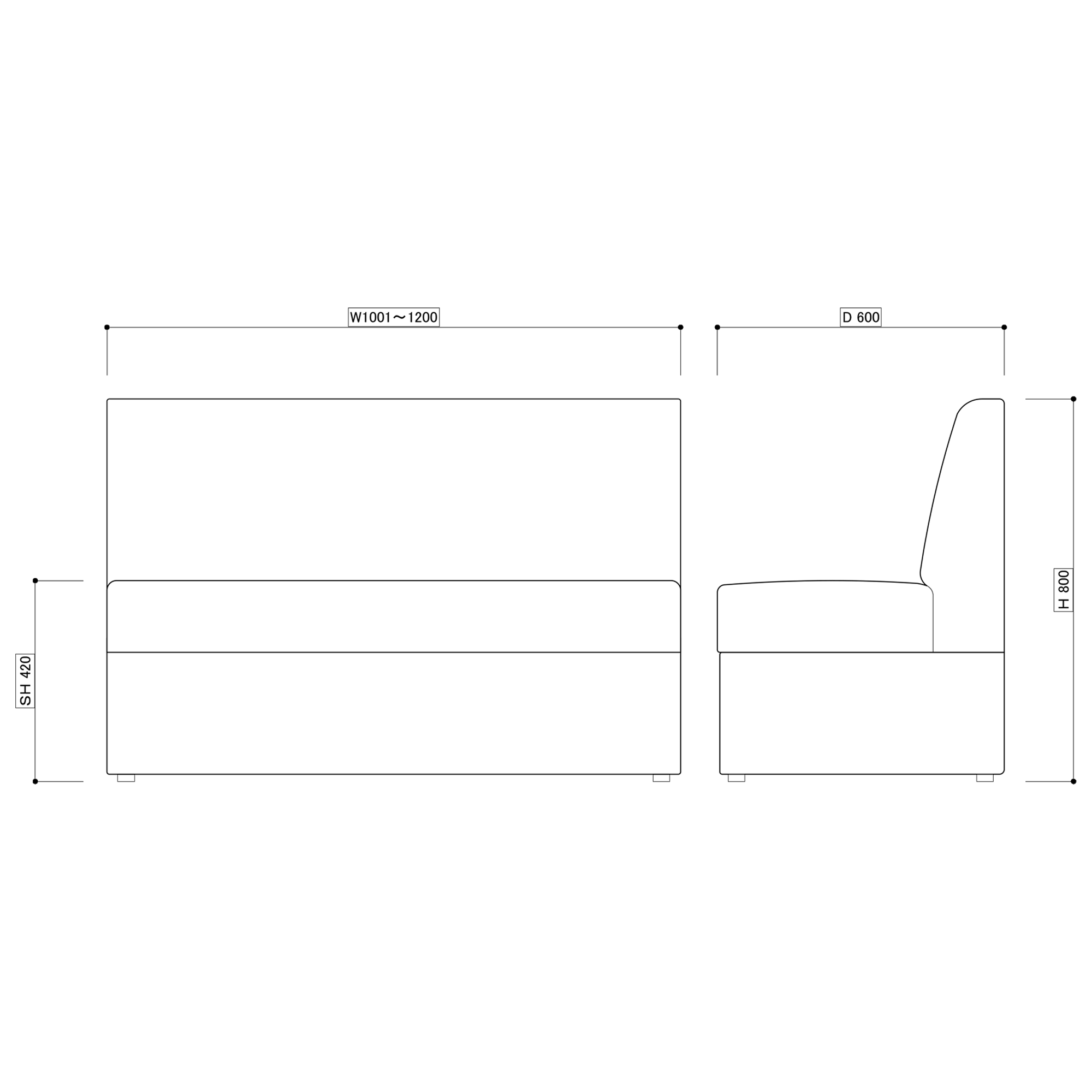 - サイズ W1001~1200×D600×H8...