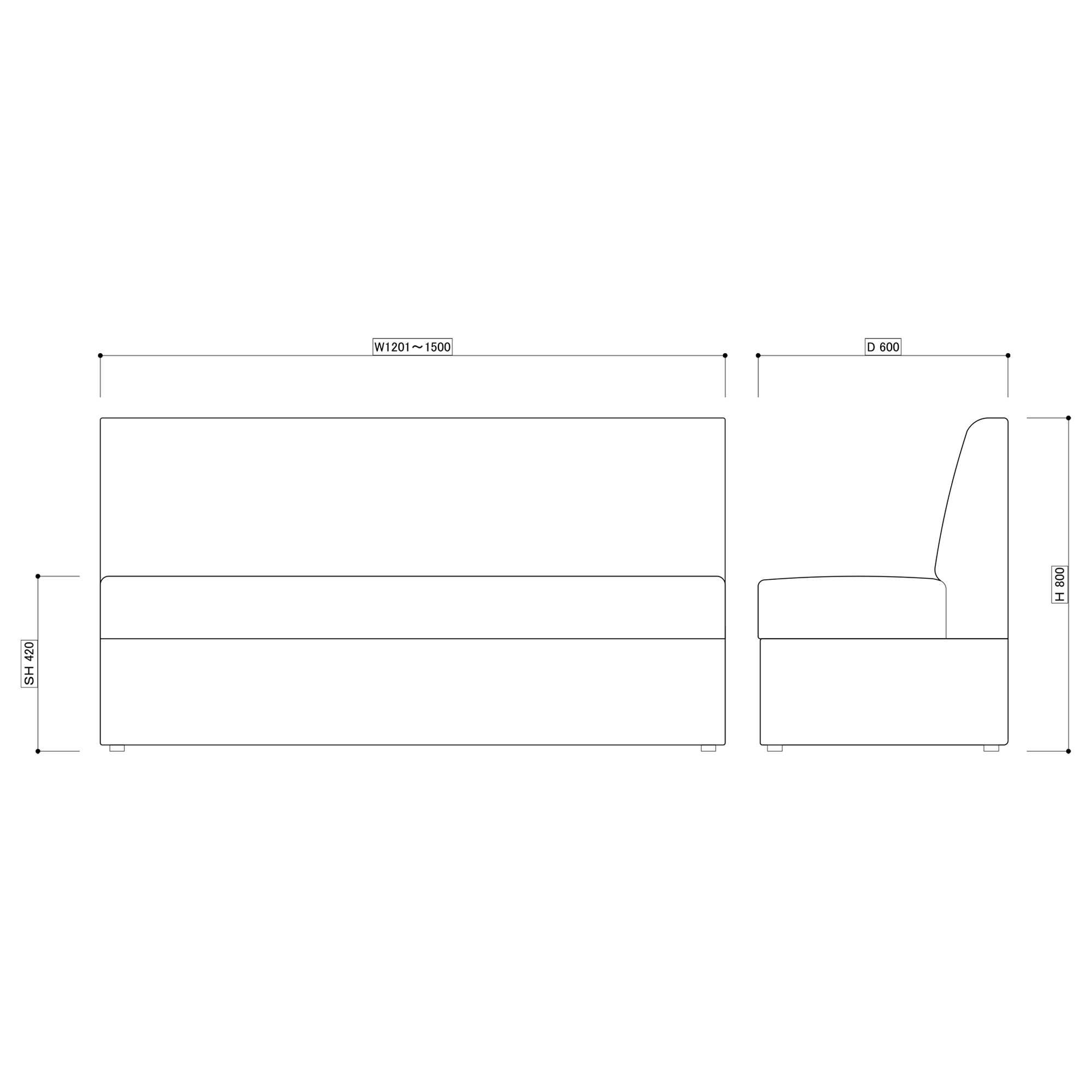 - サイズ W1201~1500×D600×H8...