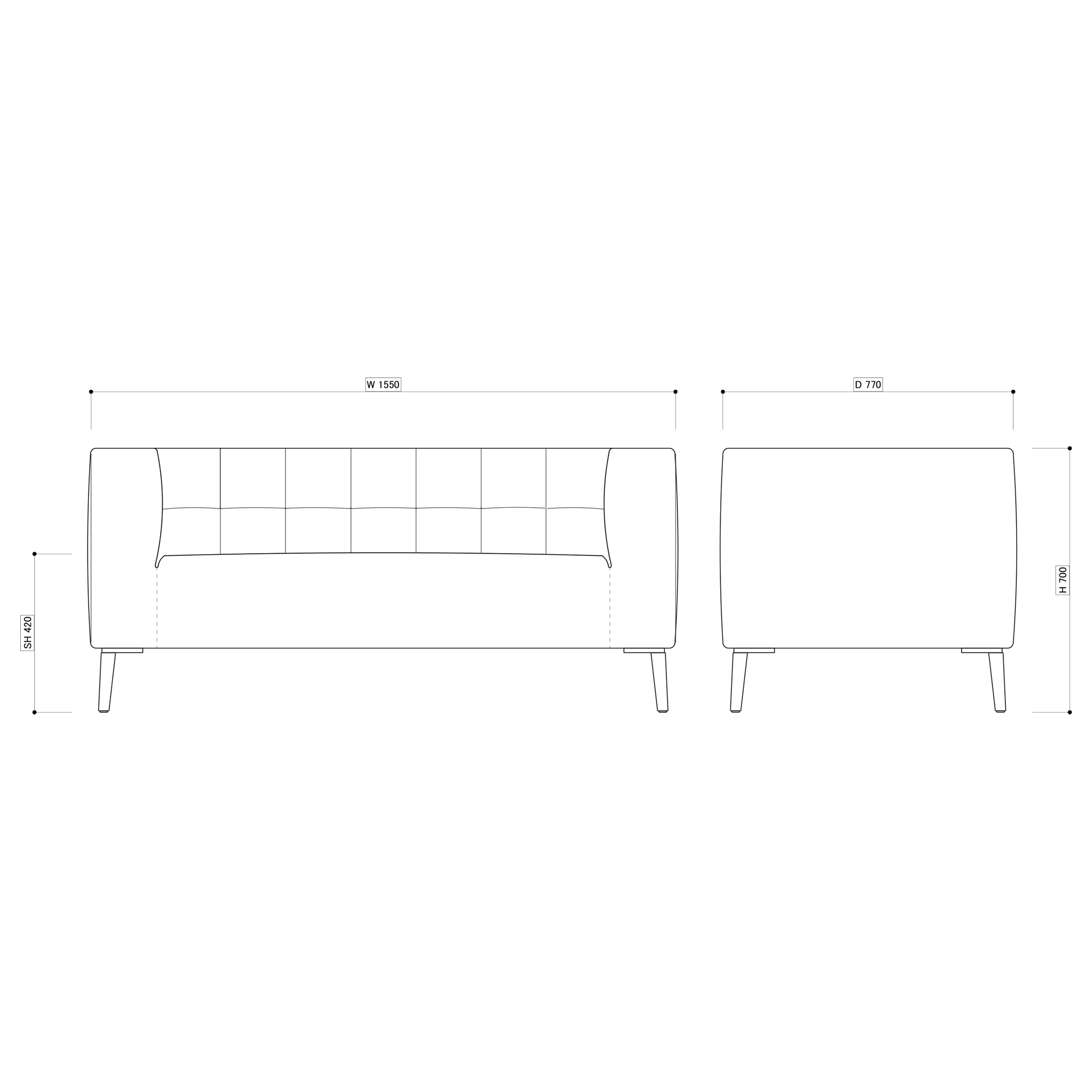 - サイズ W1550×D770×H700 (S...
