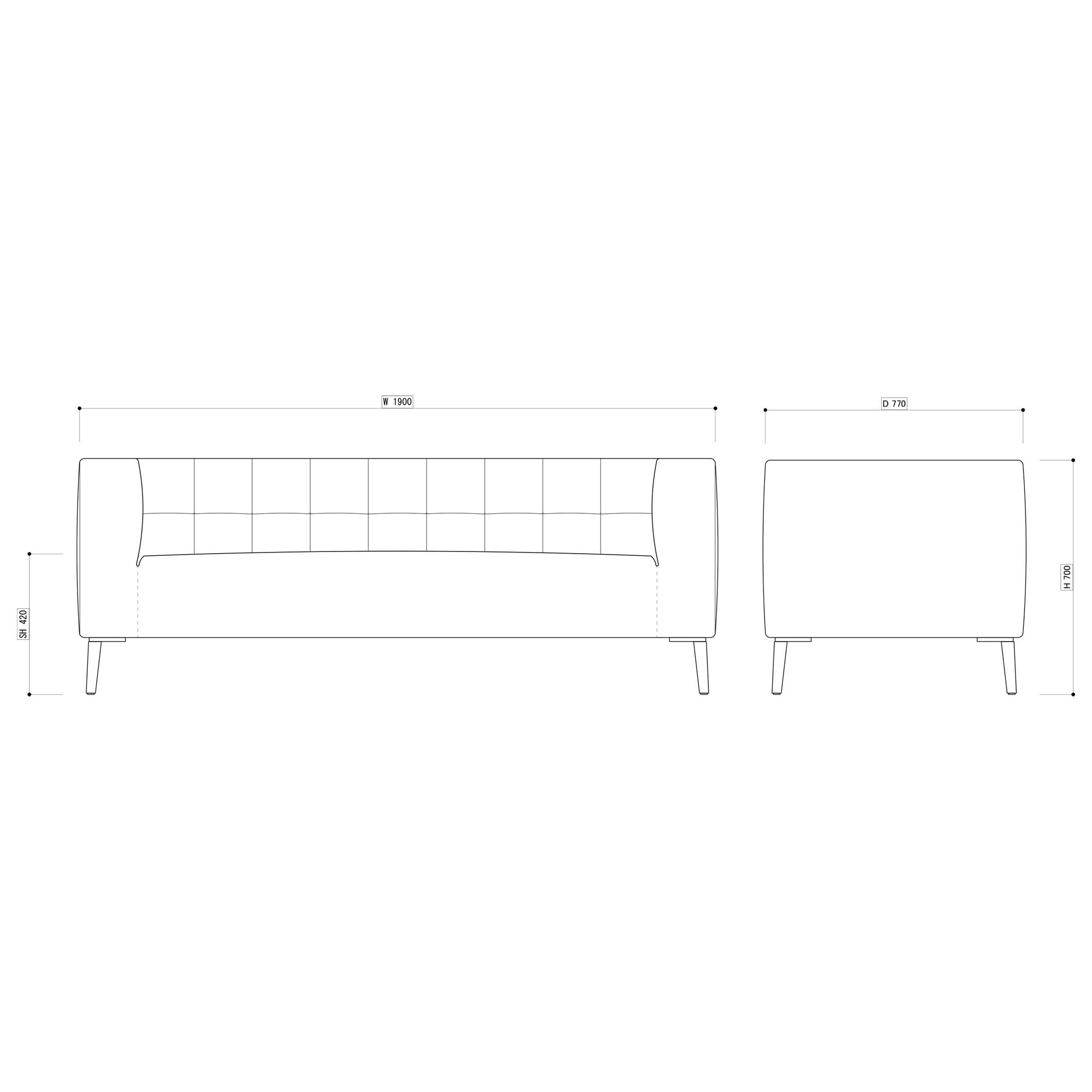 - サイズ W1900×D770×H700 (S...